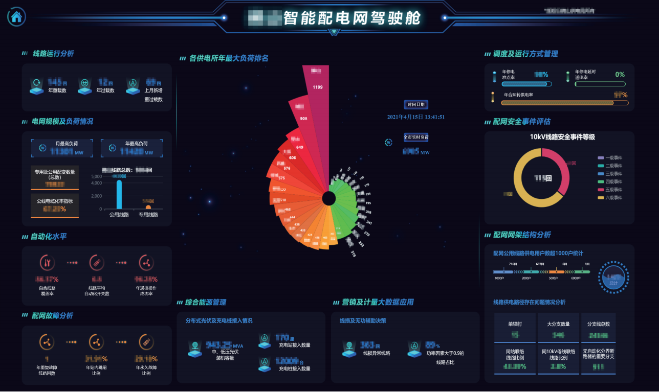 基于大數(shù)據(jù)技術(shù),對海量配電網(wǎng)臺賬數(shù)據(jù)和運(yùn)行數(shù)據(jù)進(jìn)行深度挖掘,創(chuàng)新引入智能分析手段,通過配網(wǎng)網(wǎng)架結(jié)構(gòu)自動解析生成,實現(xiàn)配網(wǎng)一次設(shè)備拓?fù)洚惓E卸霸蚍治霾崿F(xiàn)問題閉環(huán)管理,實現(xiàn)配網(wǎng)線路聯(lián)絡(luò)情況智能分析以及配網(wǎng)線路饋線組及典型接線智能診斷,實現(xiàn)配網(wǎng)線路自動化水平與薄弱點(diǎn)的智能在線分析,提供配網(wǎng)規(guī)劃輔助報告一鍵生成,對配網(wǎng)網(wǎng)架動態(tài)結(jié)構(gòu)、網(wǎng)架異常、風(fēng)險點(diǎn)、薄弱點(diǎn)等進(jìn)行智能識別,全面揭示錯綜復(fù)雜的配電網(wǎng)運(yùn)行狀況,利用多維可視化交互技術(shù)直觀形象地呈現(xiàn)配網(wǎng)網(wǎng)架結(jié)構(gòu)、線路自動化水平、配網(wǎng)風(fēng)險點(diǎn)等智能分析結(jié)果,為配網(wǎng)規(guī)劃、配網(wǎng)運(yùn)行、應(yīng)急處置、配網(wǎng)檢修、客戶服務(wù)等提供基礎(chǔ)支撐。