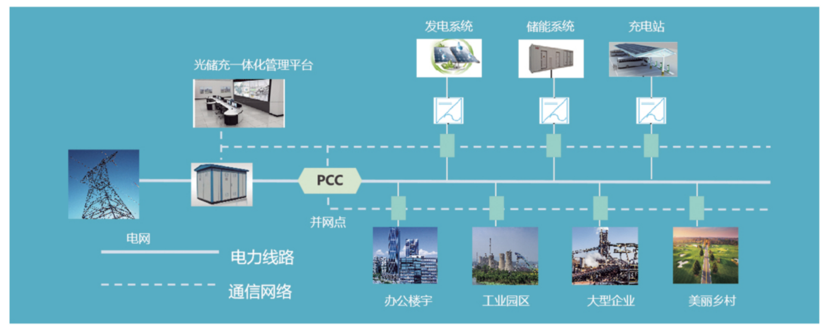 雙碳目標(biāo)和以新能源為主體的新型電力系統(tǒng)的構(gòu)建提出,以清潔、低碳、綠色的方式滿足能源使用需求,促進(jìn)多能協(xié)同互補(bǔ)模式的形成,加強(qiáng)綜合能源高效利用,促進(jìn)新能源的消納,光儲(chǔ)充一體化管理成為能源低碳化的強(qiáng)有力支撐工具。通過(guò)將光伏發(fā)電、儲(chǔ)能、電動(dòng)汽車充電、能量管理等要素進(jìn)行部署,能夠?qū)崿F(xiàn)發(fā)電、充/放電、儲(chǔ)能“三位一體”。